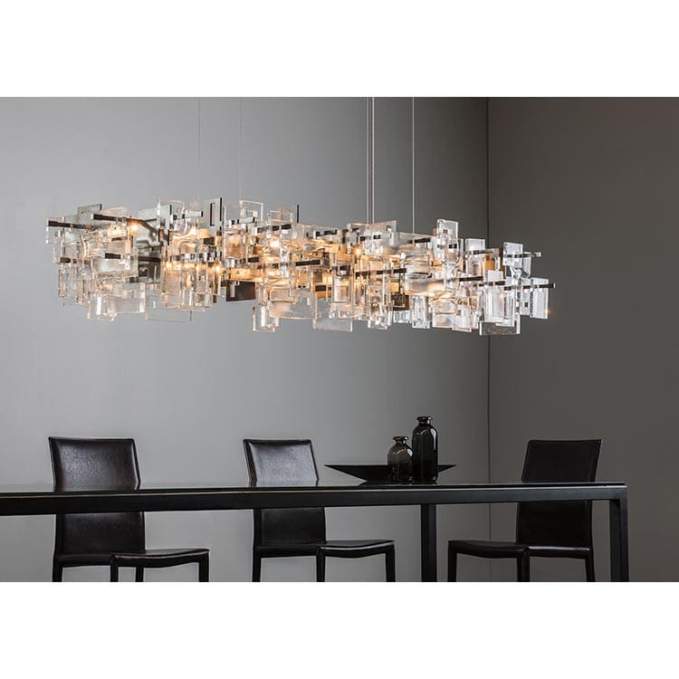 Hang 75–85 cm above tabletop; in open areas keep ~240–260 cm floor-to-bottom.