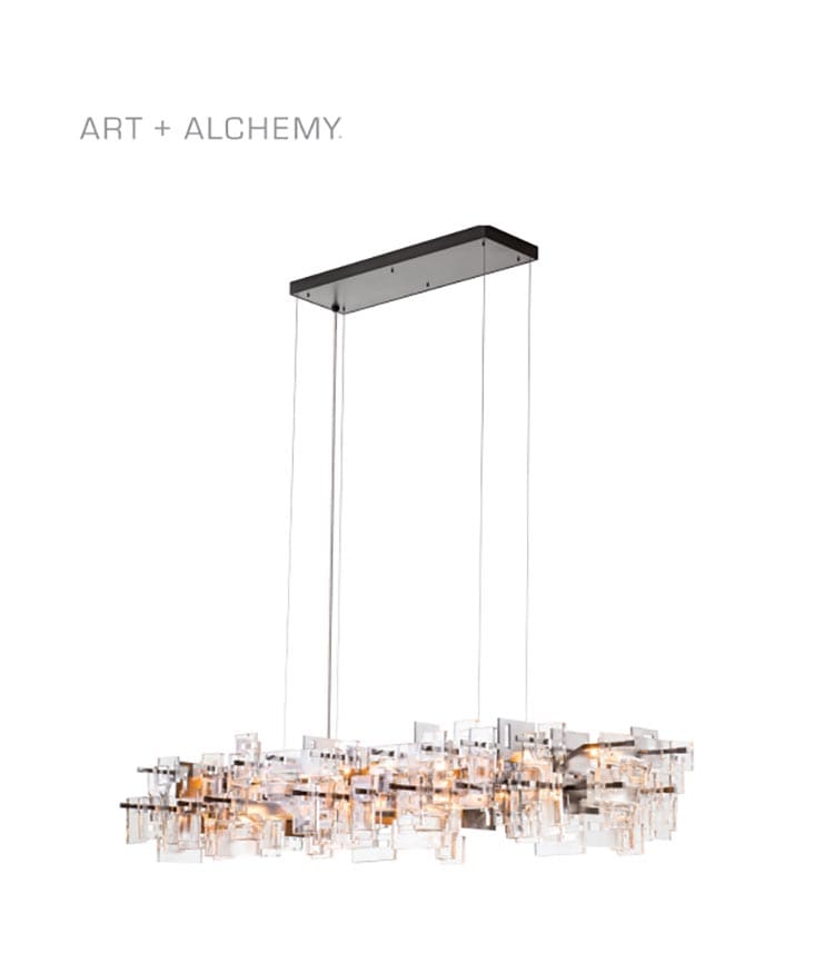 The copper & glass round chandelier reads Art Deco → Contemporary, with stepped rings of prismatic glass and warm copper metalwork. The smaller diameters suit intimate dining spaces or bedrooms; the larger sizes anchor grand dining tables and foyers. The standard 40 cm chain/cable ships ready to install and is extendable on request—leave your desired drop at checkout. CE + CSA UL LISTED.