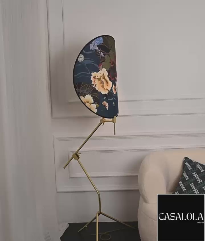 Основание выполнено из цельной нержавеющей стали, а диффузор — из усиленной ткани с ботаническим узором, предназначенной для мягкого и равномерного освещения.